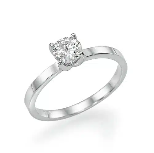 טבעת סוליטר משובצת יהלום מרכזי בארבע שיניים מוגבהות, טבעת עדינה וקלאסית.