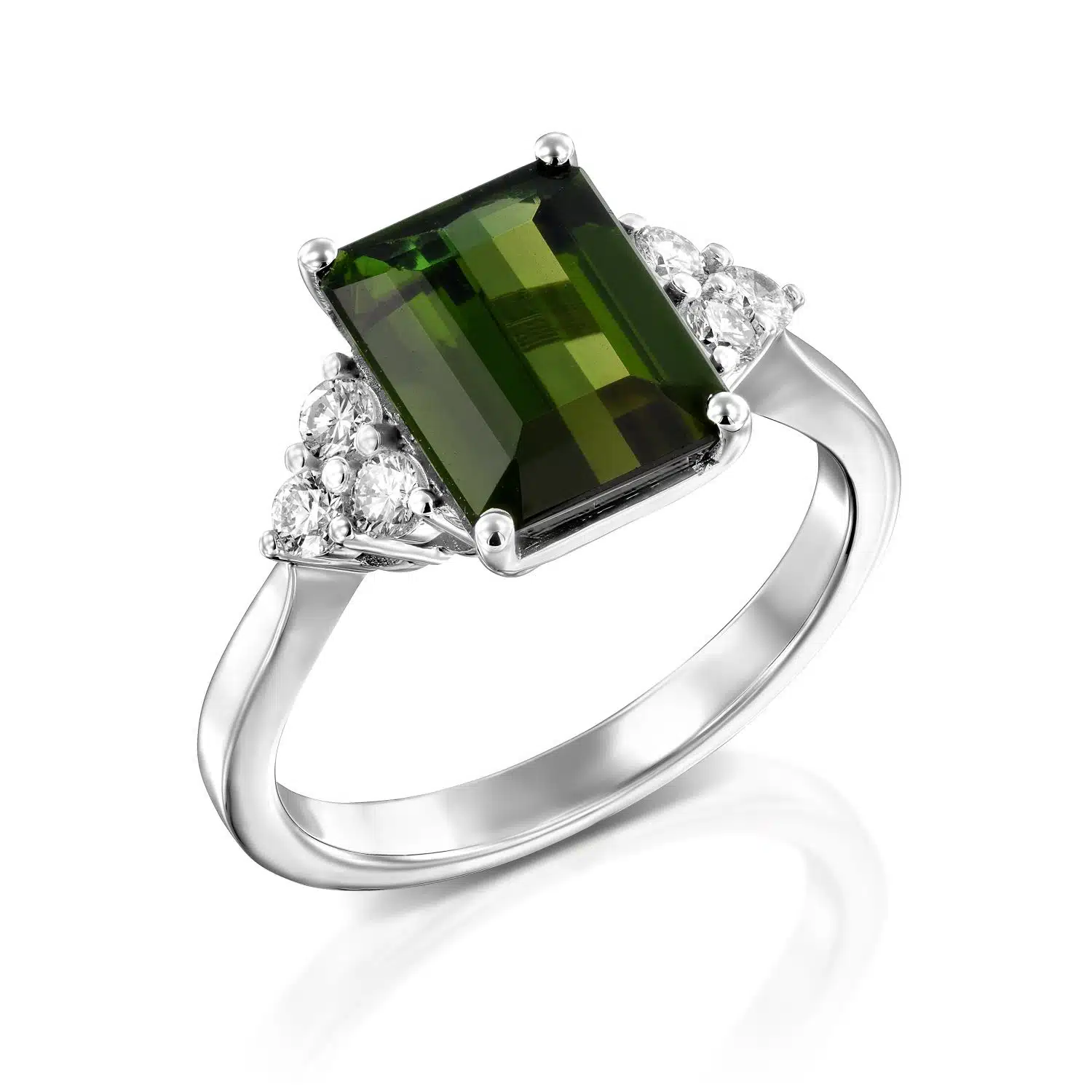 טבעת יוקרתית, משובצת אבן חן טורמלין בחיתוך אמרלד