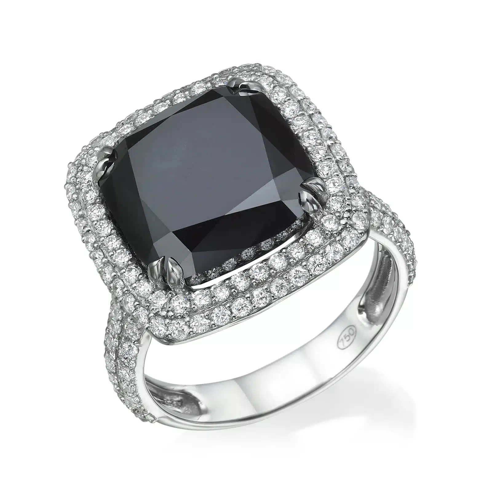 מותאמת במיוחד ליהלום שחור בחיתוך “קושן” במשקל כ16 קראט, משובצת יהלומים לבנים איכותיים בשיבוץ “פאווה”.