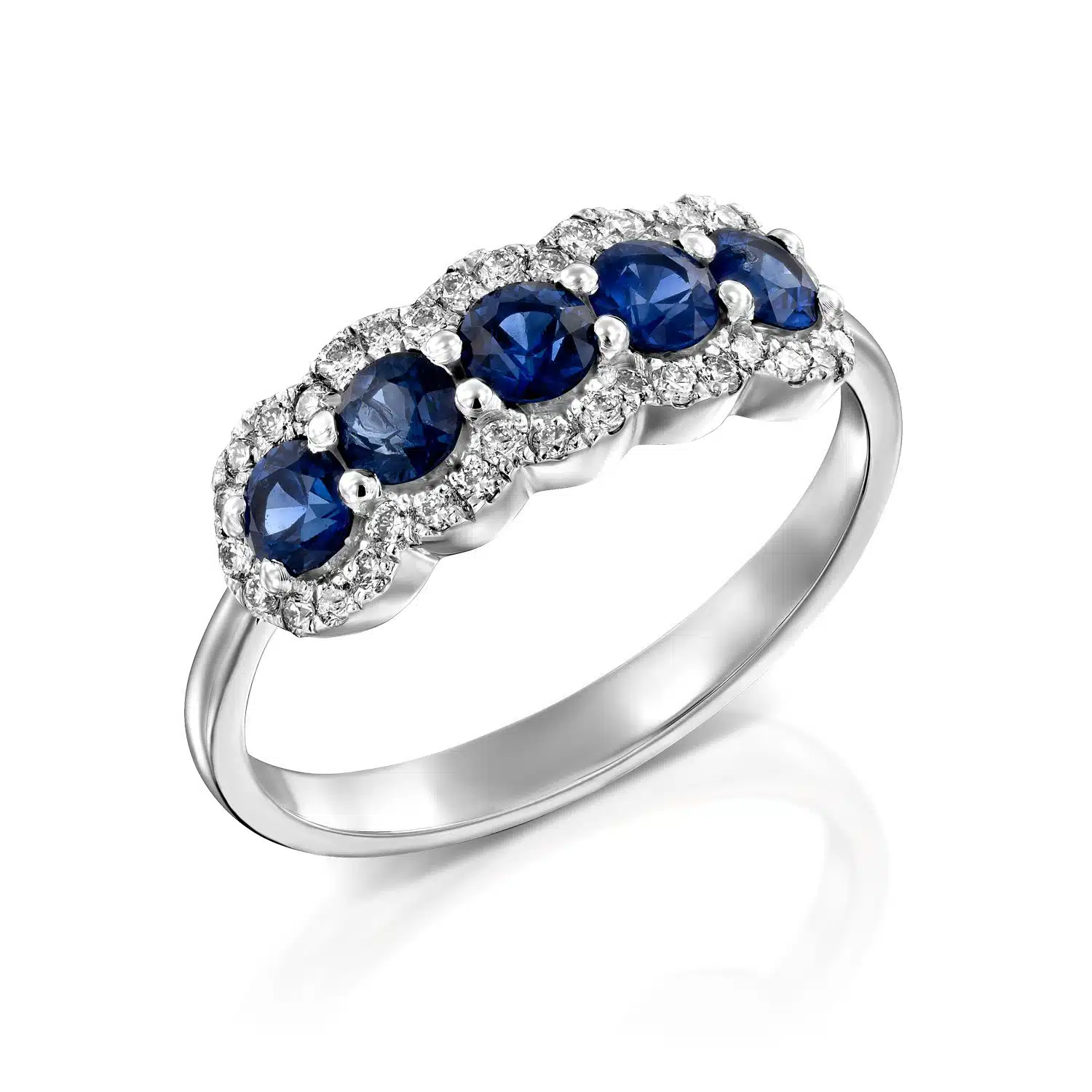 טבעת מרשימה, משובצת חמש אבני חן מסוג “ספיר” טבעיות בחיתוך עגול במשקל 0.76 קראט