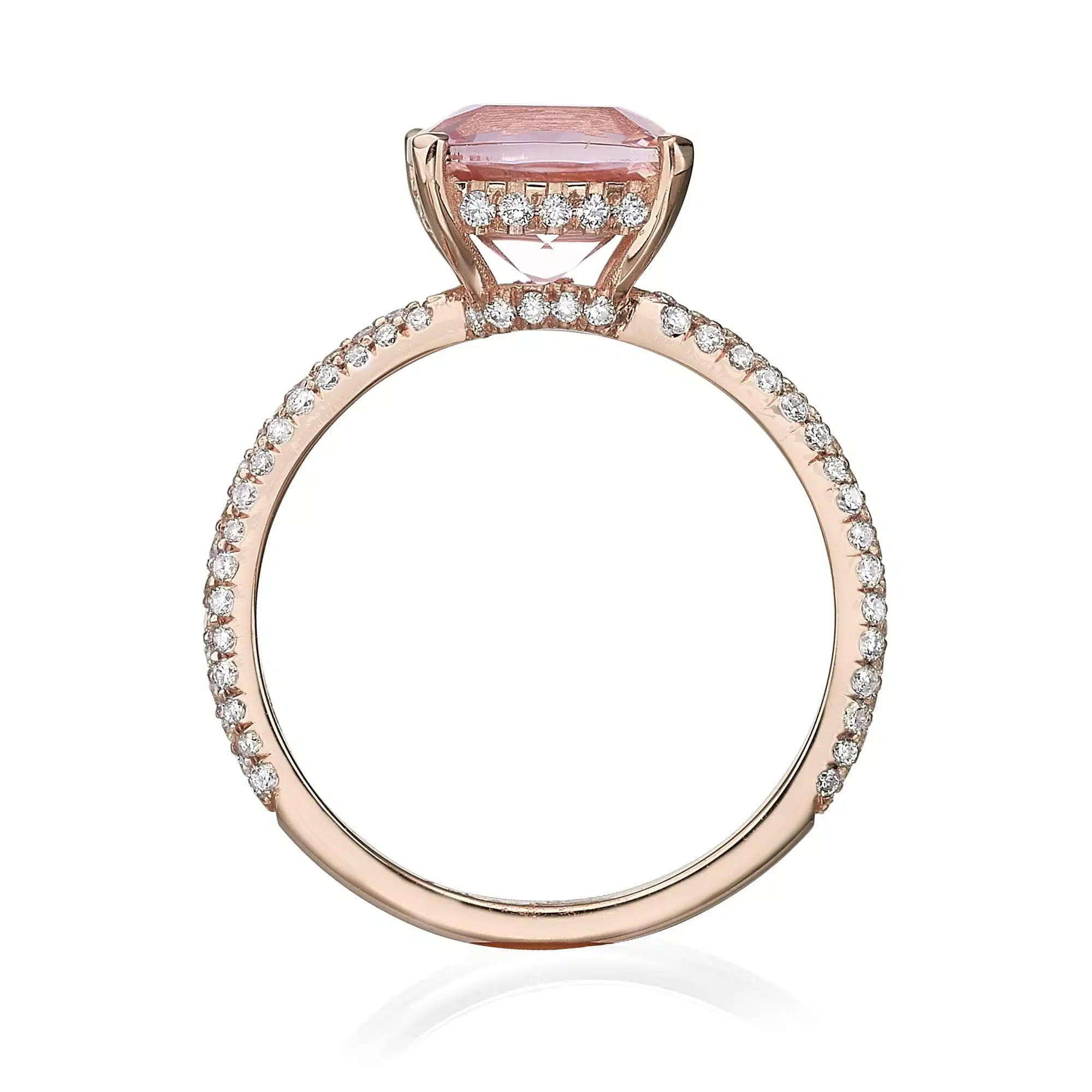 טבעת יוקרתית, משובצת אבן חן מורגנייט בחיתוך קושן בעלת גוון ורוד