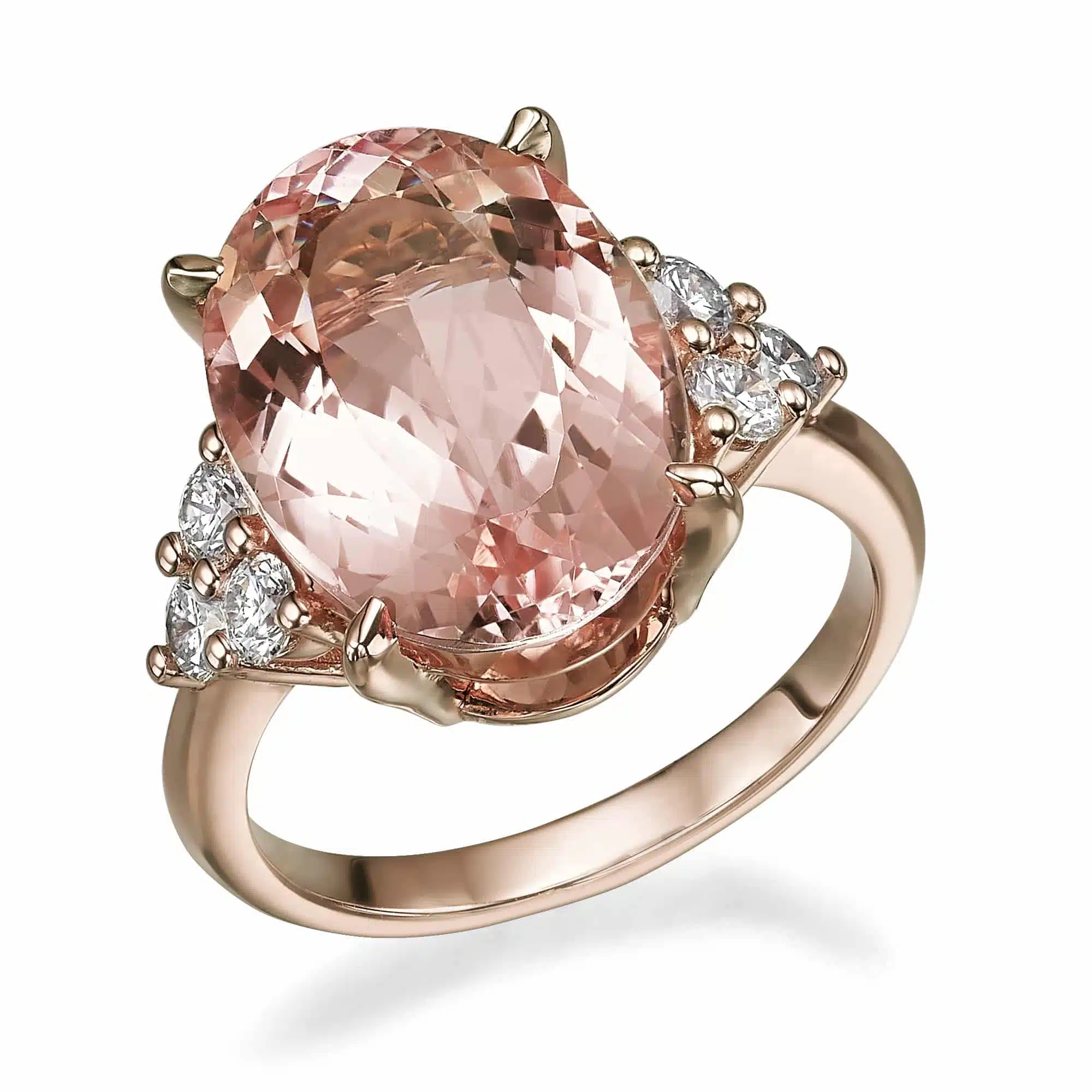 טבעת יוקרתית, משובצת אבן חן מורגנייט בחיתוך אובל בעלת גוון ורוד