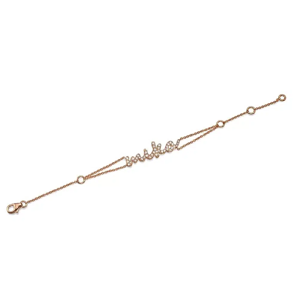 צמיד שם בעיצוב אישי, משובץ יהלומים איכותיים ומובחרים.