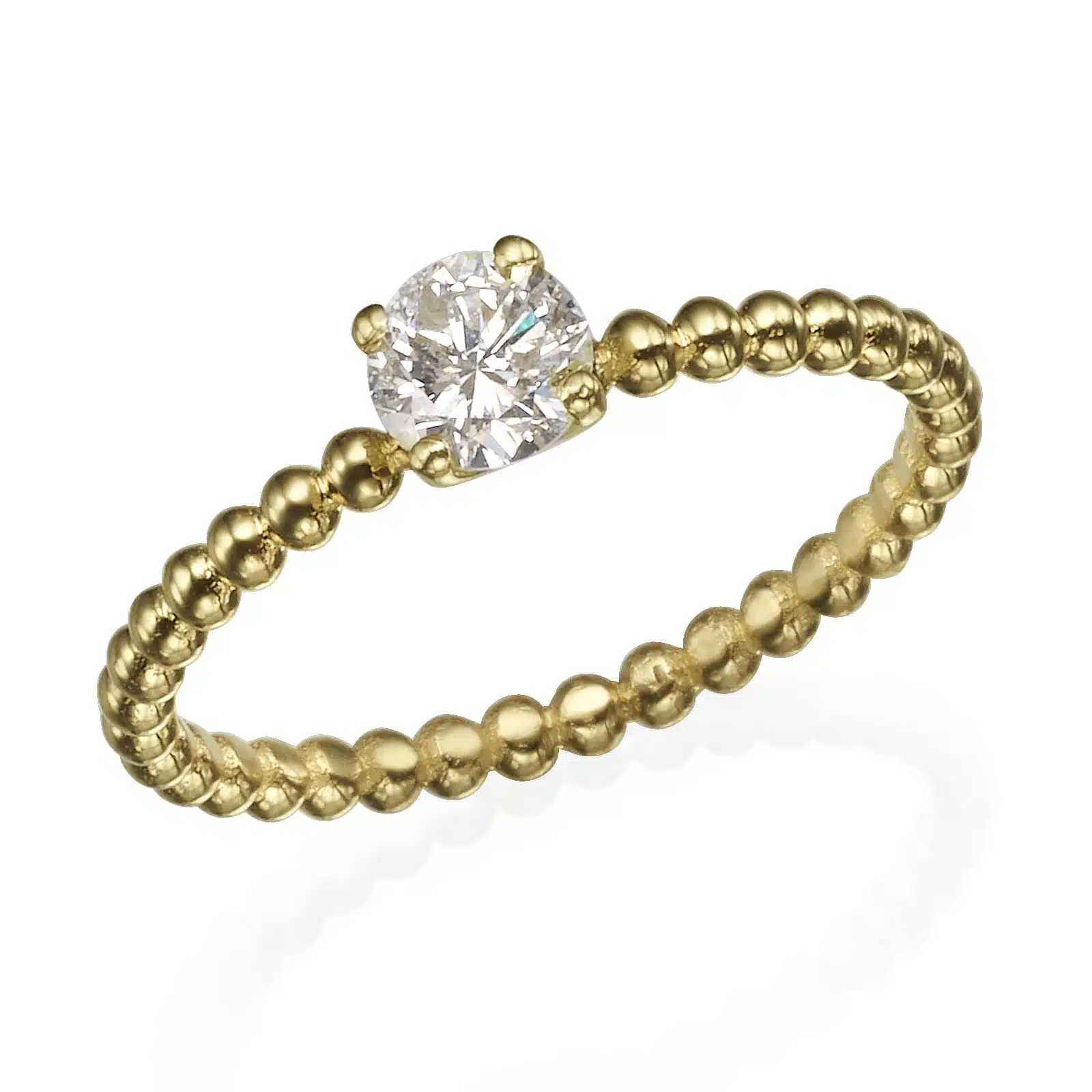 טבעת סוליטר מעודנת בעיצוב מודרני, משובצת יהלום מרכזי עגול בארבע שיניים עדינות.