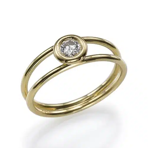 טבעת בעיצוב עדין ומודרני, משובצת יהלום מרכזי.