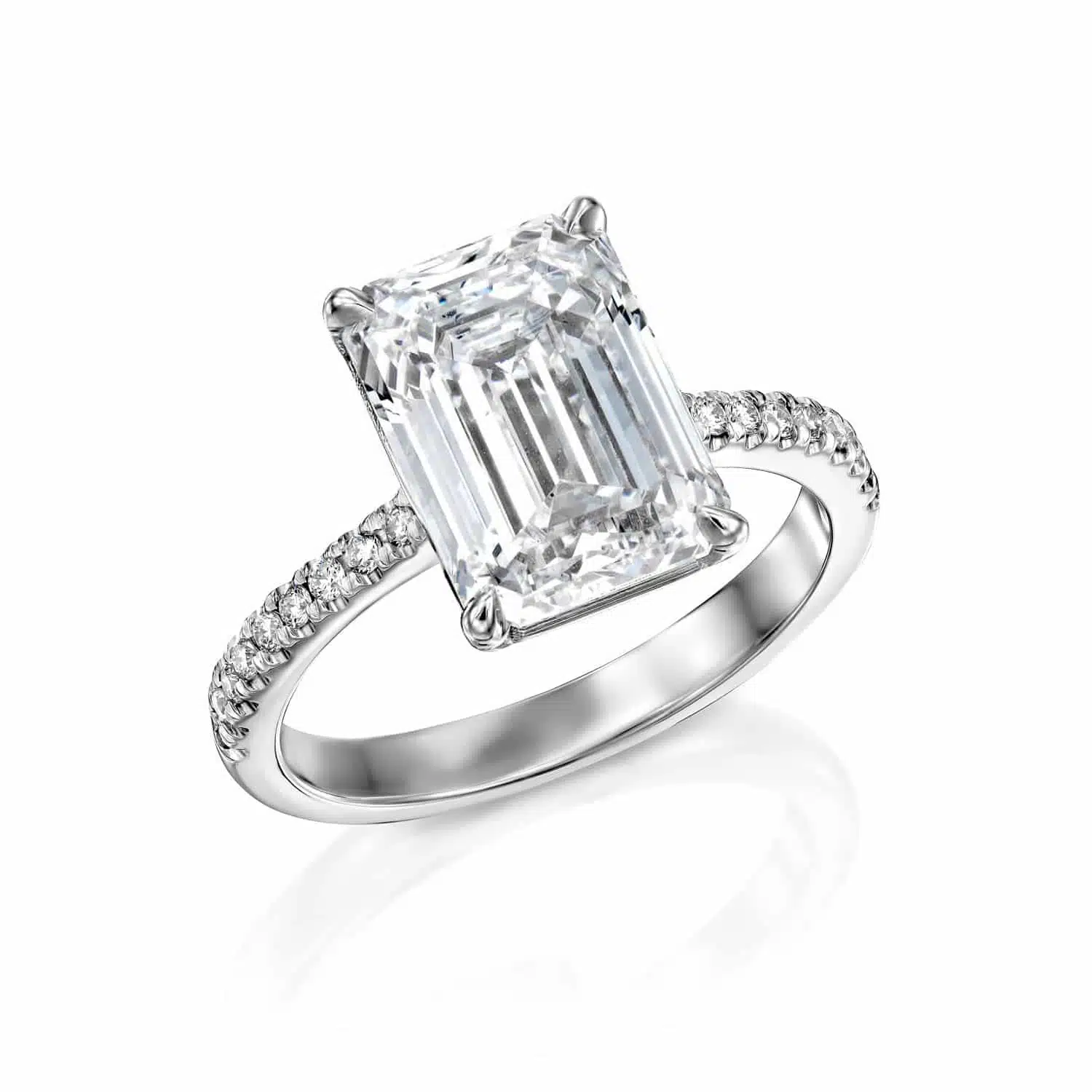 טבעת קלאסית ואלגנטית, משובצת יהלום מרכזי גדול בחיתוך אמרלד