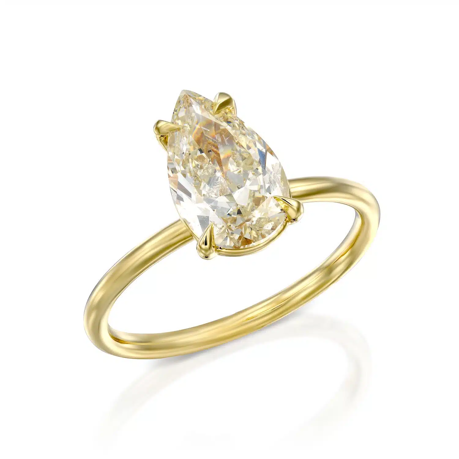 טבעת סוליטר קלאסית ואלגנטית, משובצת יהלום מרכזי בחיתוך טיפה.