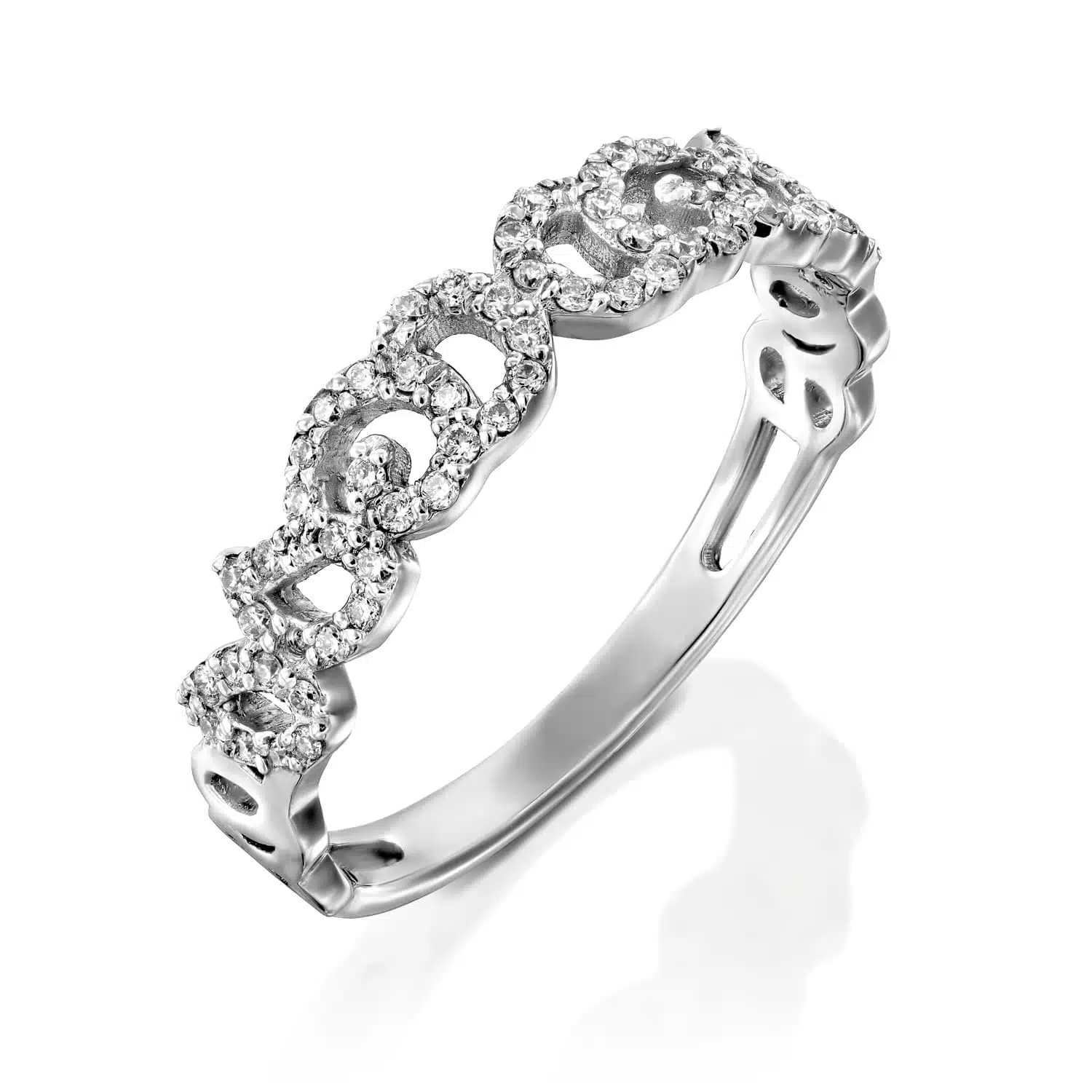 טבעת חצי נישואין בעיצוב עיטורים, משובצת יהלומים באיכות F/VS.