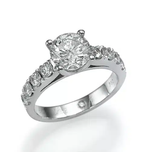 טבעת קלאסית ויוקרתית, בנויה ליהלום מרכזי גדול יחסית ויהלומי צד מרשימים בולטים.