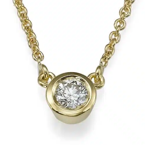 תליון יהלום סוליטר קלאסי, בשיבוץ חובק ועיצוב נקי.